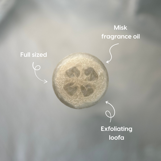 Gentle and hydrating Glycerin soap bars with a exfoliating loofa inclusion. mini and full sized bars are available with a variety of fragrance oil and essential oil (aromatherapeutic) options.